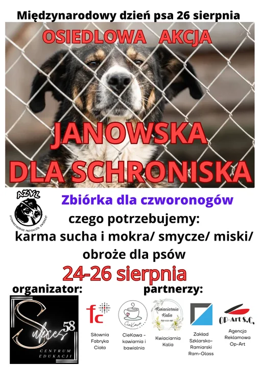 W dniach 24-26 sierpnia w punktach zlokalizowanych przy ulicy Janowskiej można przynieść najpotrzebniejsze rzeczy dla czworonogów. Potrzebne są: karma sucha i mokra, smycze, miski, obroże dla psów.