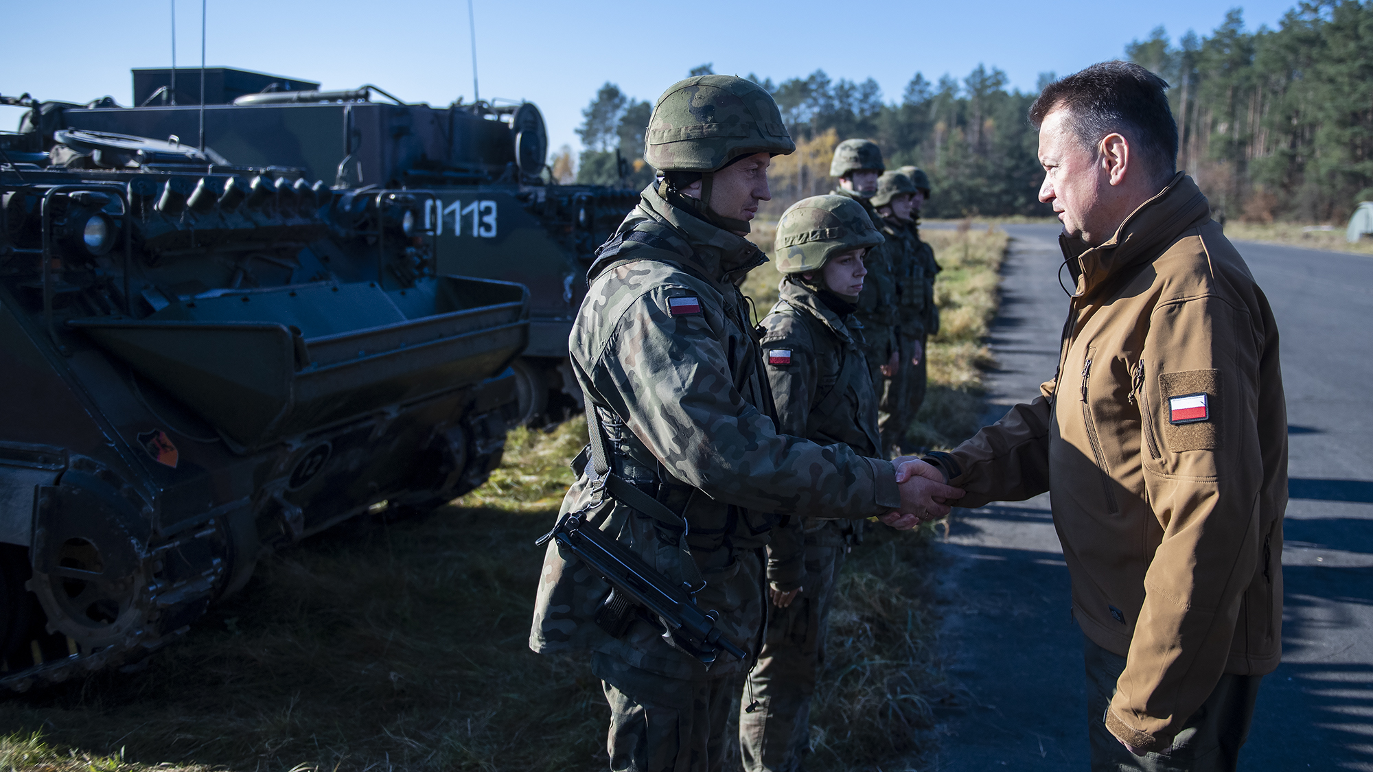 W piątek, 29 października br. szef MON spotkał się z żołnierzami 10. Brygady Kawalerii Pancernej ze Świętoszowa odbywającymi szkolenie taktyczne na wschodzie Polski.