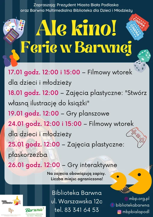 Ale kino! Ferie w Barwnej. (Biblioteka Barwna, ul. Warszawska 12 c, tel 83 341 64 53)