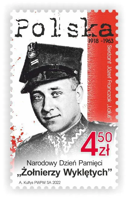 Opis: Wydany przez Pocztę Polską znaczek upamiętniający Józefa Franczaka, ps. "Laluś"