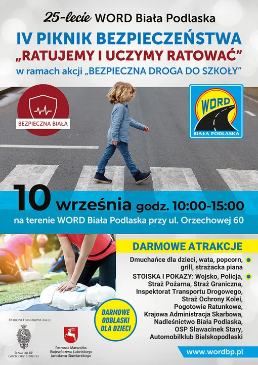 Organizatorem wydarzenia jest bialski WORD oraz stowarzyszenie "Bezpieczna Biała". W tym roku piknik bezpieczeństwa odbędzie się 10 września w godz 10-15 na terenie Wojewódzkiego Ośrodka Ruchu Drogowego w Białej Podlaskiej, przy ul. Orzechowej 60. Celem pikniku jest kształtowanie i propagowanie właściwych postaw z zakresu bezpieczeństwa, zarówno u dzieci, jak i dorosłych. Na stałe wpisał się już w kalendarz wydarzeń miejskich.