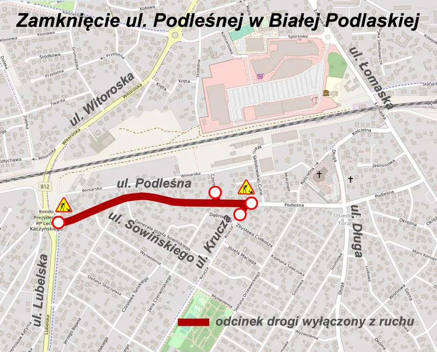 Ulica Podleśna została wyłączona z ruchu na odcinku od ul. Lubelskiej do ul. Kruczej.