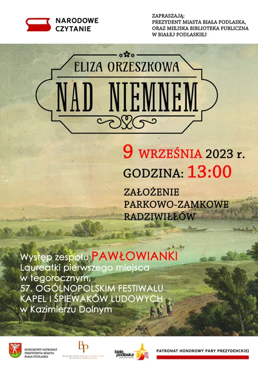 Podczas spotkania zaplanowany jest także występ zespołu Pawłowianki, laureatów tegorocznego 57. Ogólnopolskiego Festiwalu Kapel i Śpiewaków Ludowych w Kazimierzu Dolnym. Wydarzenie ma charakter otwarty. W przypadku niekorzystnej pogody, Narodowe Czytanie odbędzie się w budynku Zespołu Szkół Muzycznych I i II stopnia im. F. Chopina w Białej Podlaskiej.