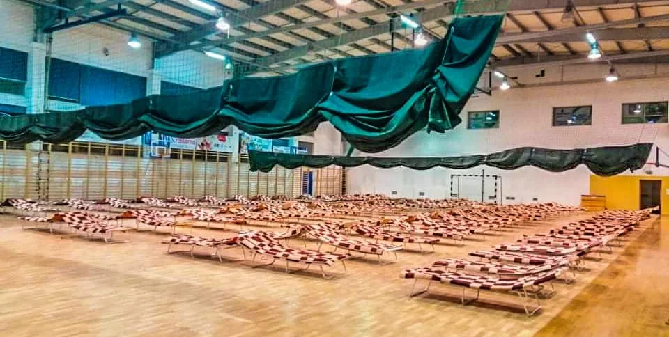 Ekipę Miejskiego Ośrodka Pomocy Społecznej i miejscki Referat Zarządzania kryzysowego w pracach nad zaadaptowaniem hali wspomagali m.in. uczniowie i nauczyciele.