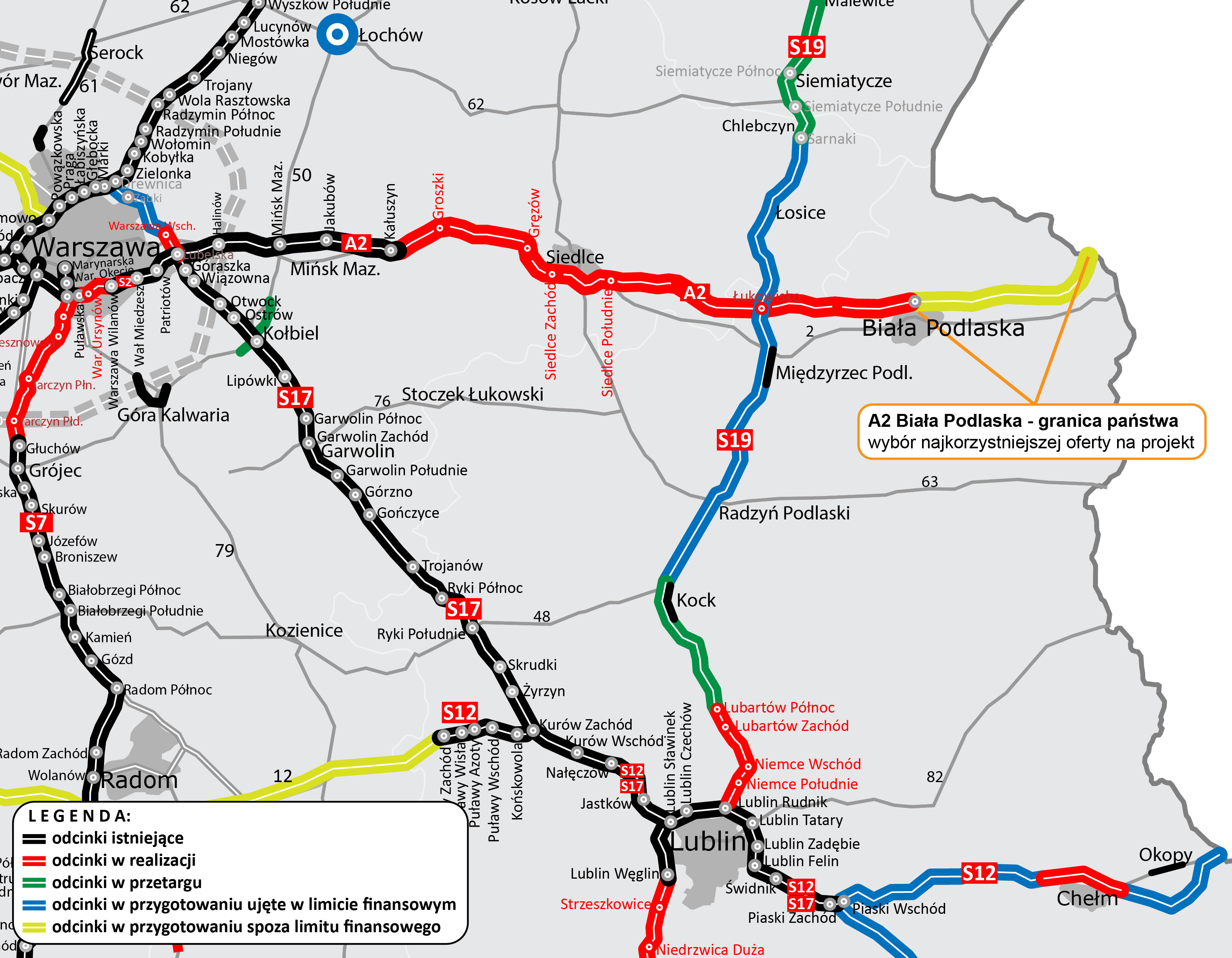 Zadaniem projektanta będzie wykonanie projektu budowlanego wraz z uzyskaniem decyzji o zezwoleniu na realizację inwestycji drogowej w ciągu 30 miesięcy od dnia podpisania umowy. Nowa trasa, od węzła Biała Podlaska (km 624+830) do granicy państwa z Białorusią (km 657+703), będzie miała dwie jezdnie z dwoma pasami ruchu oraz rezerwę pod dobudowę trzeciego pasa. W sierpniu 2020 r. oddano do ruchu ponad 15 km A2 pomiędzy węzłem Lubelska a obwodnicą Mińska Mazowieckiego.
