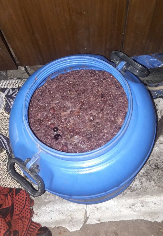 Podczas przeszukania policjanci ujawnili i zabezpieczyli niemal 100 litrów „zacieru” znajdującego się w plastikowych beczkach oraz gotowy już produkt.