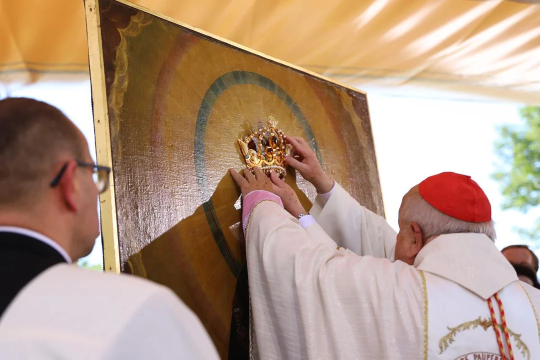 Główne uroczystości rekoronacji obrazu Matki Bożej Kodeńskiej rozpoczęły się 15 sierpnia od procesji z obrazem. W historii Polski była to trzecia taka koronacja, a druga w obecnych granicach Rzeczypospolitej. Pierwsza papieska koronacja miała miejsce na Jasnej Górze w 1717 roku, rok później koronowano wizerunek Maryi w Trokach koło Wilna. Trzecie takie wydarzenie odbyło się właśnie w Kodniu. W sierpniu ubiegłego roku nowe korony pobłogosławił ojciec święty Franciszek. A podczas uroczystości korony nieśli główni ich fundatorzy - Grzegorz i Marzena Biereccy. W koronie są bursztyny - biały, miodowły oraz złoty. W koronie Maryi jest kamień z groty Narodzenia w Betlejem, a w koronie Chrystyusa - kamień z Golgoty.