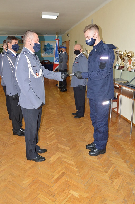 Ślubowanie przyjęło czterech nowych funkcjonariuszy. Powitał ich w policyjnych szeregach Komendant Miejski Policji w Białej Podlaskiej insp. Wojciech Czapla. Pogratulował policjantom. Życzył im powodzenia oraz wytrwałości w pracy na rzecz bezpieczeństwa mieszkańców, a także satysfakcji z wykonywanych obowiązków.