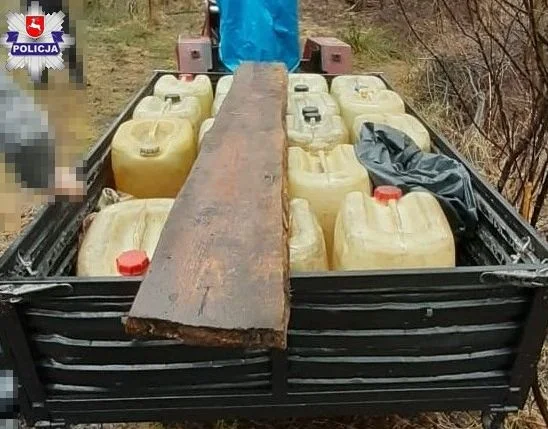 Z ustaleń policjantów wynika, że 64-latek spuszczał paliwo z cysterny, po czym przewoził je w baniakach do znajdującego się nieopodal ciągnika.