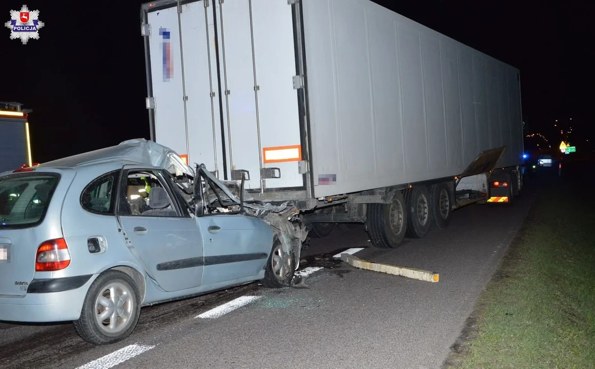 W nocy z soboty na niedzielę na DK-2 w powiecie bialskim pomiędzy miejscowościami Żabce - Międzyrzec Podlaski kierujący samochodem osobowym marki Renault 33-letni mieszkaniec Międzyrzeca Podlaskiego najechał na tył jadącego przed nim samochodu ciężarowego marki Man z naczepą.