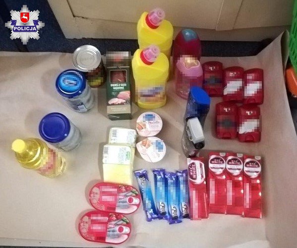 W pokojach obydwu mężczyzn policjanci ujawnili skradziony towar. Znajdował się nadal w koszykach sklepowych. Odnaleźli tam również artykuły pochodzące z innego sklepu, gdzie istniało duże prawdopodobieństwo, że również zostały skradzione. Łupem sprawców padły artykuły spożywcze, zabawki jak też kosmetyki i chemia gospodarcza. Łączna wartość strat oszacowana została przez pokrzywdzonych na kwotę ponad 1800 złotych.