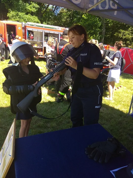 Na odwiedzających policyjne stoisko czekało szereg atrakcji. Funkcjonariusze przygotowali pokaz sprzętu wykorzystywanego w służbie. Dużym zainteresowaniem cieszył się sprzęt PZ, w skład którego wchodzą: specjalny kask ochronny, kamizelka przeciwuderzeniowa, pałka szturmowa oraz tarcza ochronna. Wyposażenie jest wykorzystywane między innymi podczas zabezpieczeń imprez masowych.