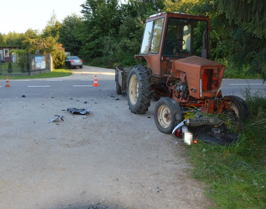 Za kierownicą ciągnika siedział 75-latek, natomiast motocyklem marki Honda podróżował 31-latek, który w wyniku wypadku doznał obrażeń ciała. Obaj byli trzeźwi.