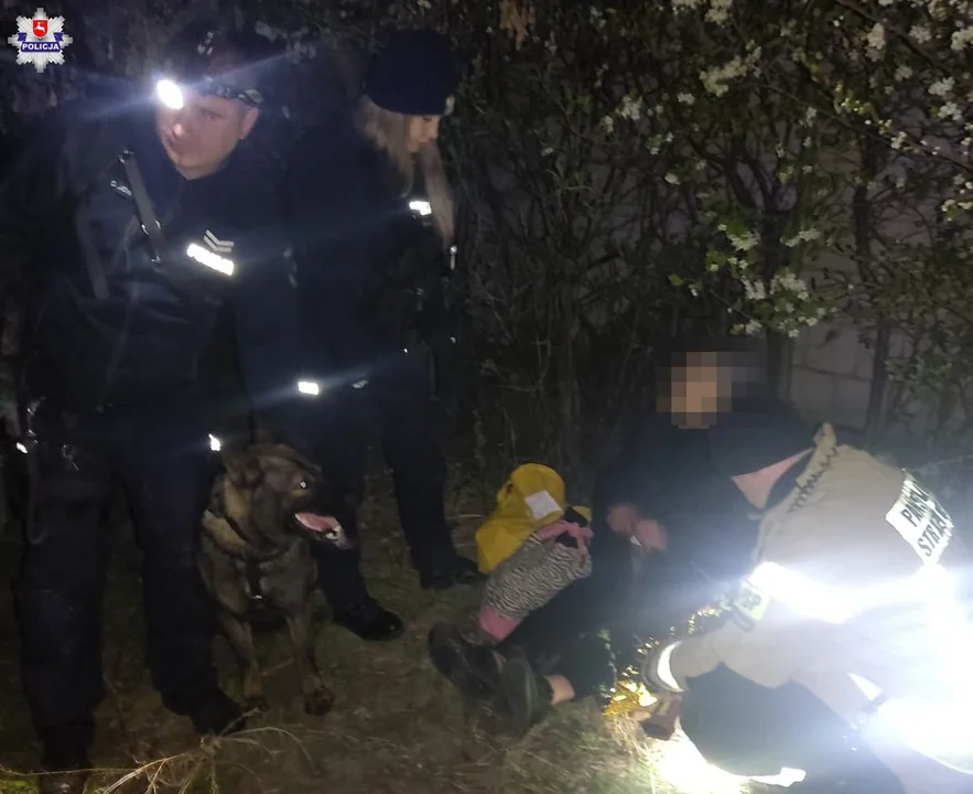 Po godz. 2.00 w nocy seniorkę wytropił policyjny pies służbowy "Tolo", którego przewodnikiem jest st. sierż. Dawid Jowik z KMP w Bialej Podlaskiej. Kiedy policjant usłyszał szczekanie swojego czworonożnego partnera, pobiegł za budynek gospodarczy. Na ziemi w zakrzaczonym miejscu leżała śpiąca 80-latka.