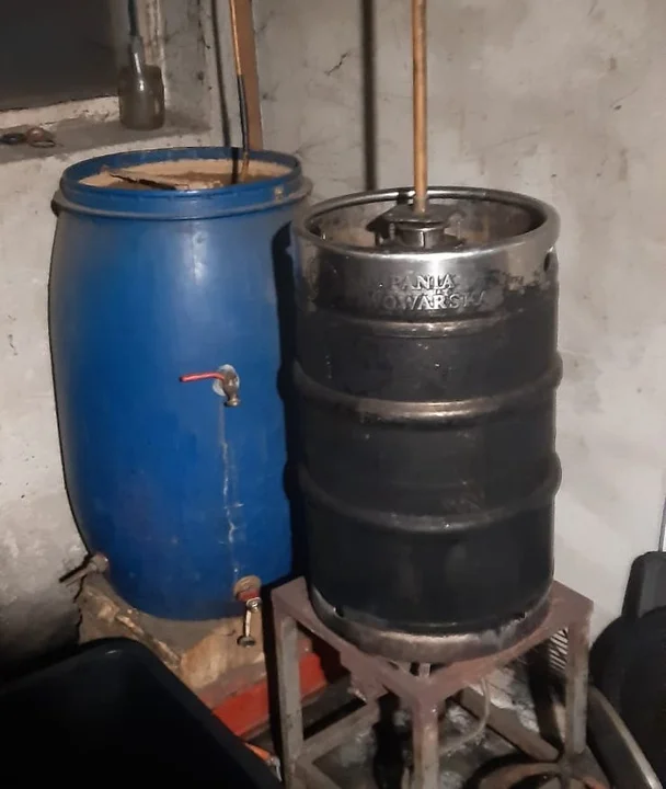 Przez weekendem kryminalni z Terespola, weszli na teren jednej z posesji w gminie Piszczac. Z informacji funkcjonariuszy wynikało, że zamieszkujący ją 48-latek produkuje alkohol, bez wymaganego zezwolenia. Na miejscu potwierdzili posiadane informacje. W trakcie przeszukania całego domu funkcjonariusze ujawnili i zabezpieczyli około 120 litrów zacieru znajdującego się w beczkach oraz gotowy już produkt. Zabezpieczyli też aparaturę służącą do wyrobu alkoholu.