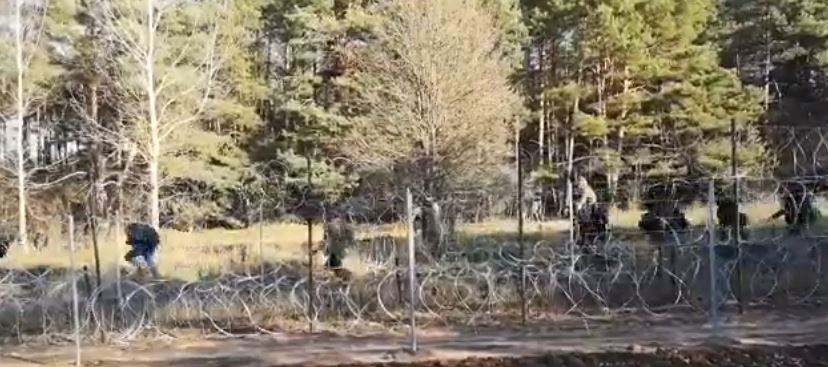Policja z Podlasia w mediach społecznościowych opublikowała nagranie, gdzie widać kordon policjantów i żołnierzy wzdłuż zasieków.
