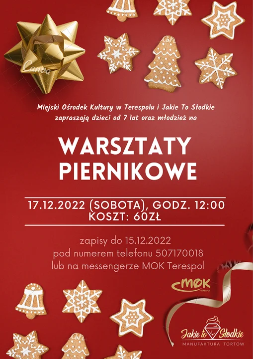 Zajęcia będą miały miejsce w sobotę 17 grudnia w nowej siedzibie MOK przy terenie rekreacyjnym ,,Konowica" - ul. Wojska Polskiego 217.
