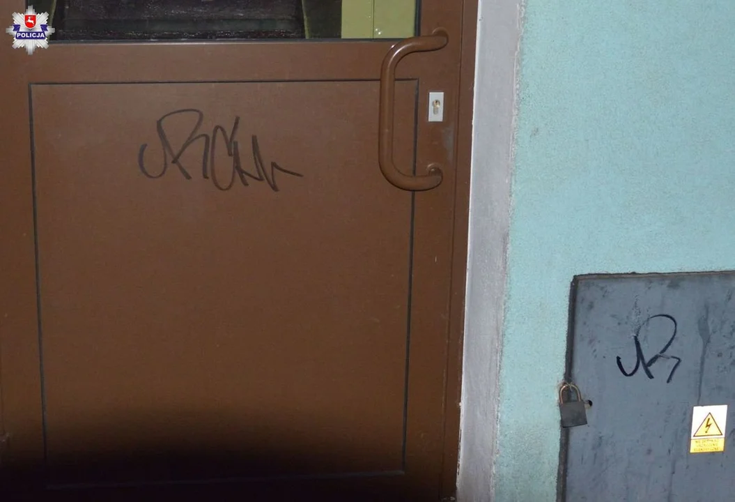 Autor: KWP Lublin | Opis: Graficiarz zniszczył drzwi do bloków