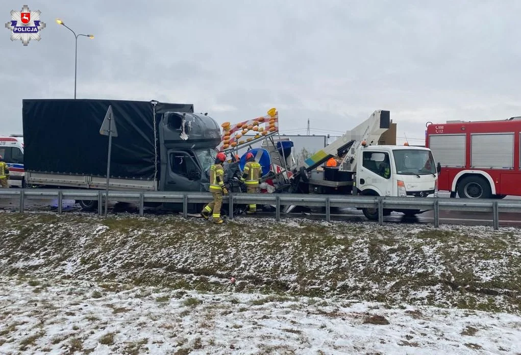Do zdarzenia doszło wczoraj przed południem na drodze s12 w kierunku Lublina. Jak wynika ze wstępnych ustaleń policjantów, kierujący renault master prawdopodobnie zasnął za kierownicą i doprowadził do zderzenia z samochodami służby drogowej. Fiat ducato z przyczepą z zamontowanym oświetleniem sygnalizacyjnym oraz nissan cabstar z podnośnikiem ustawione były na jednym z pasów.