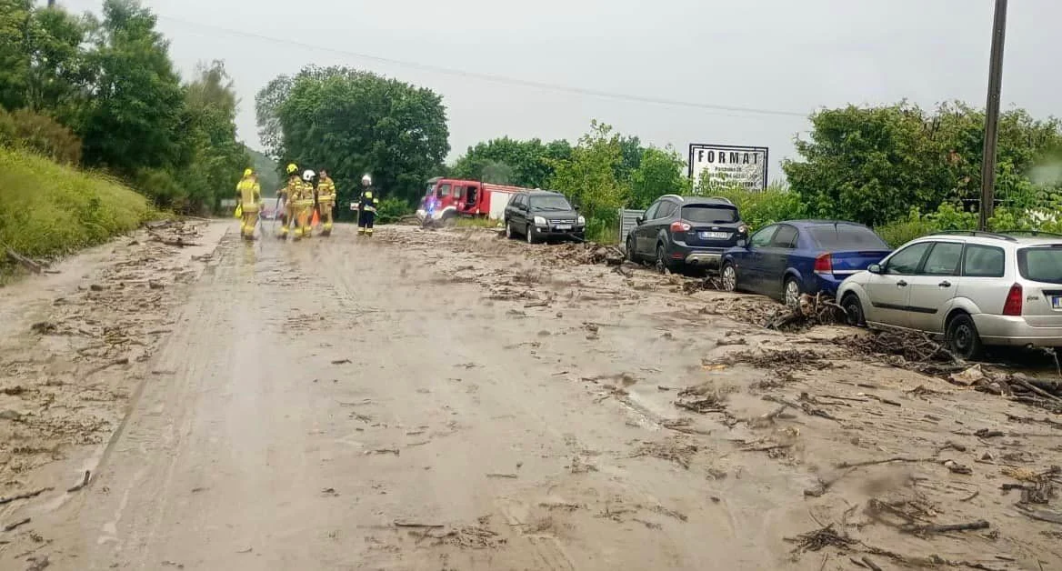 Silne opady deszczu spowodował, że z góry na drogę wojewódzką 824 zaczęła spływać woda oraz błoto. Jak informują służby najgorsza sytuacja jest w okolicy skrzyżowania z drogą do Zbędowic oraz na końcu Parchatki przy warsztacie samochodowym. Straż usuwa połamane gałęzie drzew, pompuje też wodę z zalanych posesji.