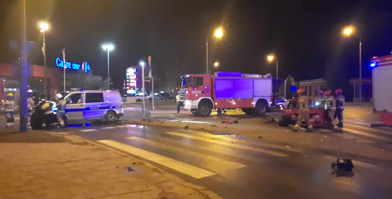 Do zdarzenia doszło po godz. 21.00. Z policyjnym radiowozem marki volkswagen transporter zderzył się osobowy fiat. Na miejscu pracuje policja i straż pożarna.