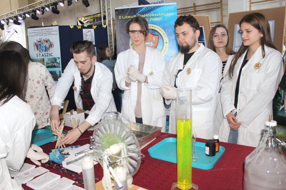 Na wielu stoiskach przygotowano gimnazjalistom nie tylko ofertę edukacyjną, pokazy eksperymentów i praktycznych zajęć, ale także przekąski i smakołyki. Zaprezentowały się tam bialskie licea, technika, szkoły zawodowe oraz Europejskie Centrum Kształcenia i Wychowania OHP w Roskoszy (miało trzynaście stoisk wystawienniczych).