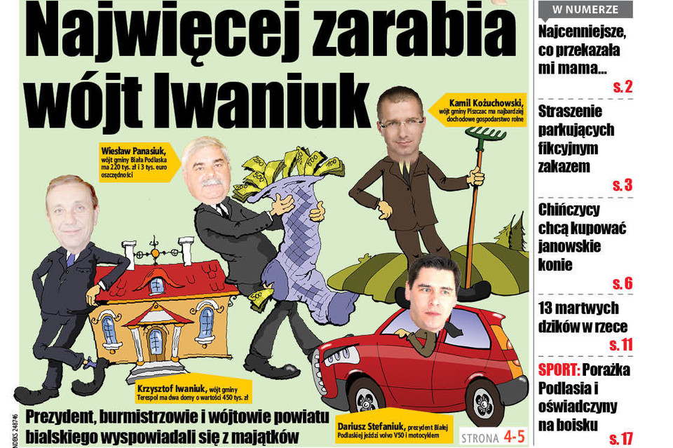 Najbardziej zadłużeni są natomiast Paweł Kazimierski, Wójt Gminy Leśna Podlaska, który ma do spłacenia 260 tys. zł kredytu hipotecznego, oraz Wójt Gminy Międzyrzec Podlaski Krzysztof Adamowicz, który płaci raty kredytu we frankach szwajcarskich.