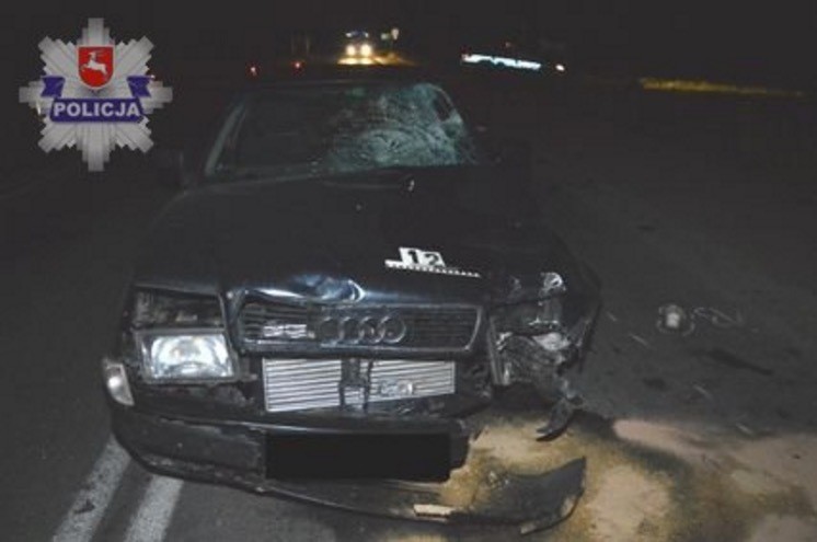 Motorowerzysta wyjeżdżając z drogi podporządkowanej uderzył w przód samochodu audi, następnie przeleciał nad pojazdem i przez tylną szybę wpadł do jego wnętrza. Jak się okazało kierowca jednośladu był pod wpływem alkoholu, którego zawartość w organizmie wynosiła 0,6 promila.