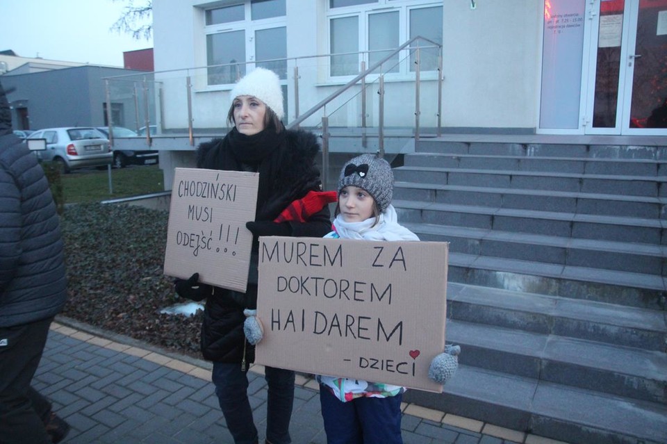 Na protest pod bialskim szpitalem przybyło w sumie kilkaset osób. Pojawili się zwykli mieszkańcy, ale również samorządowcy, przyjaciele doktora Haidara oraz pracownicy oddziału neonatologii. Protestujacy domagają się natychmiastowego przywrócenia Haidara na stanowisko ordynatora neonatologii. Poza tym chcą również odwołania Adama Chodzińskiego, dyrektora bialskiego szpitala (Zjednoczona Prawica).