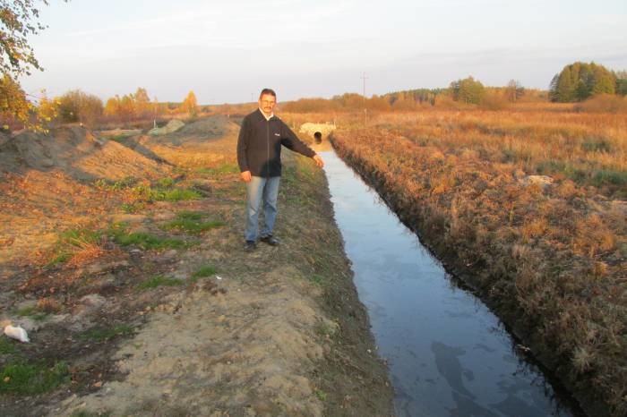 Zbigniewowi Bartoszewskiemu do śmiechu raczej nie jest. Najpierw zauważył dziwną substancję blisko rowu, który płynie przez jego ogromną działkę. Kiedy pokazał to znajomemu radnemu, ten mu poradził zasypać ziemią. Pan Zbigniew i tak musiał podnieść teren, więc zaczął w tym miejscu nawozić grunt. Potem oczyścił pozarastane brzegi rowu i zobaczył na lustrze wody plamy substancji o zapachu ropy. My też mogliśmy je dojrzeć. Silny zapach był wyczuwalny kilkadziesiąt metrów od rowu.