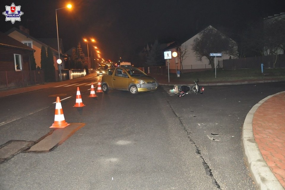 Do zdarzenia doszło wczoraj po godz. 16:00 na ul. Narutowicza w Białej Podlaskiej. Ze wstępnych ustaleń wynika, że kierujący samochodem osobowym marki Toyota, 82-letni mieszkaniec Białej Podlaskiej nie ustąpił pierwszeństwa motorowerzyście. 82-latek wykonując manewr skrętu w lewo zderzył się z jadącym z przeciwka motorowerem. Jednośladem kierował 44-letni mieszkaniec Białej Podlaskiej.