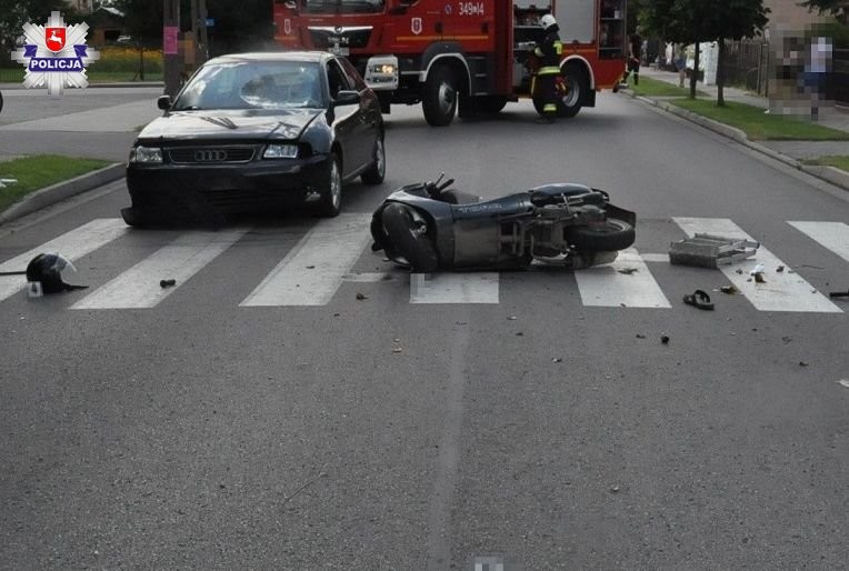 Drugim pojazdem kierował 26-letni mieszkaniec Piszczaca. Badanie przeprowadzone przez policjantów na miejscu zdarzenia potwierdziło, że kierowca audi był trzeźwy. Natomiast w przypadku kierującego jednośladem 46-latka urządzenie wykazało 2,6 promila alkoholu w organizmie. Mężczyzna z obrażeniami ciała trafił do szpitala. Na szczęście jego obrażenia nie okazały się groźne, a całe zdarzenie zakwalifikowane zostało jako kolizja.