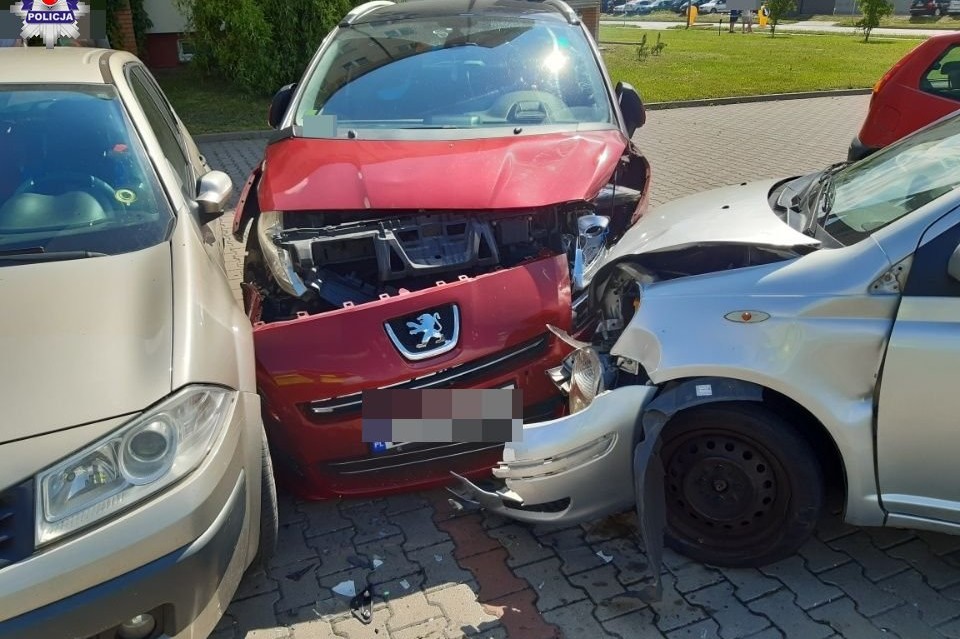 Wczoraj około godz. 9.20 na ul. Jana III Sobieskiego w Białej Podlaskiej doszło do groźnie wyglądającego zdarzenia drogowego. Z ustaleń policjantów wynika, że kierująca toyotą 20-letnia mieszkanka gm. Kodeń, skręcając w prawo, straciła panowanie nad pojazdem. Auto przejechało przez chodnik i pas zieleni, po czym uderzyło w dwa stojące na parkingu samochody. Na szczęście w wyniku zdarzenia nikt nie doznał obrażeń ciała i zakończyło się jedynie na uszkodzonych pojazdach. W chwili zdarzenia 20-latka była trzeźwa. Kobieta ukarana została maksymalnym mandatem.