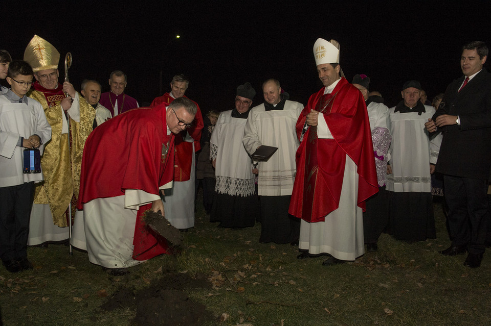 Do tej pory jej rolę pełniła kaplica, wybudowana wraz z plebanią w 2006 roku staraniem ks. Mieczysława Lipniackiego. Pierwszy szpadel pod nowy kościół wbił biskup Kazimierz Gurda.