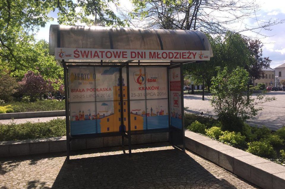 Wczoraj na Placu Wolności stanął przystanek autobusowy zapraszający wszystkich na Światowe Dni Młodzieży. Obiekt ozdobiony jest barwami i symbolami ŚDM.