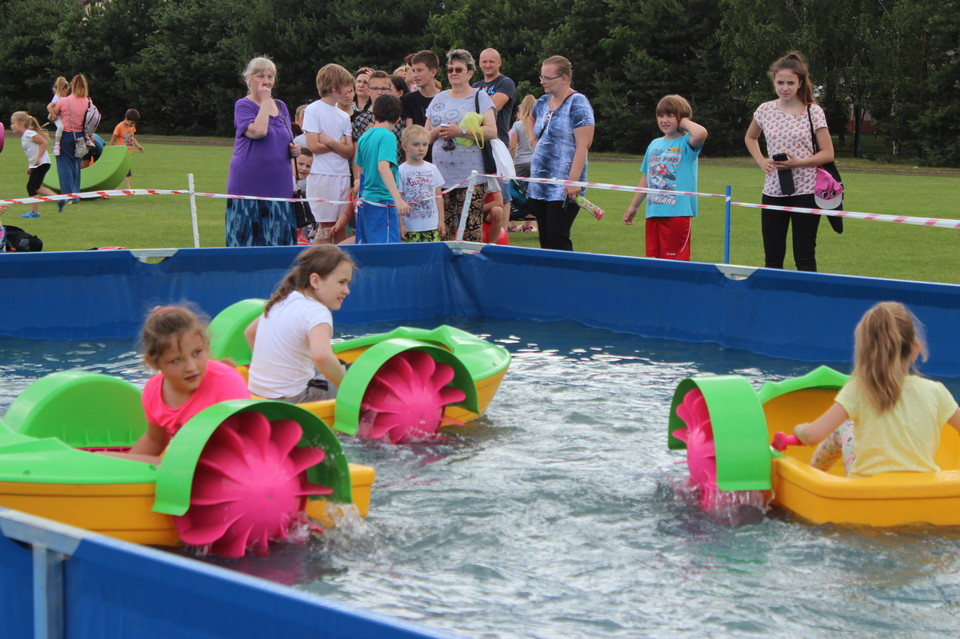 Na terenie obiektów sportowych oraz wśród pięknie pielęgnowanej zieleni uczniowie i gościnnie przybyłe przedszkolaki mogły bawić się na dmuchanych zjeżdżalniach, pływać łódeczkami oraz podziwiać pokazy taneczne i gimnastyczne. W programie były też pokazy pracy policji, straży pożarnej i strażników miejskich. Policjanci znakowali rowery.