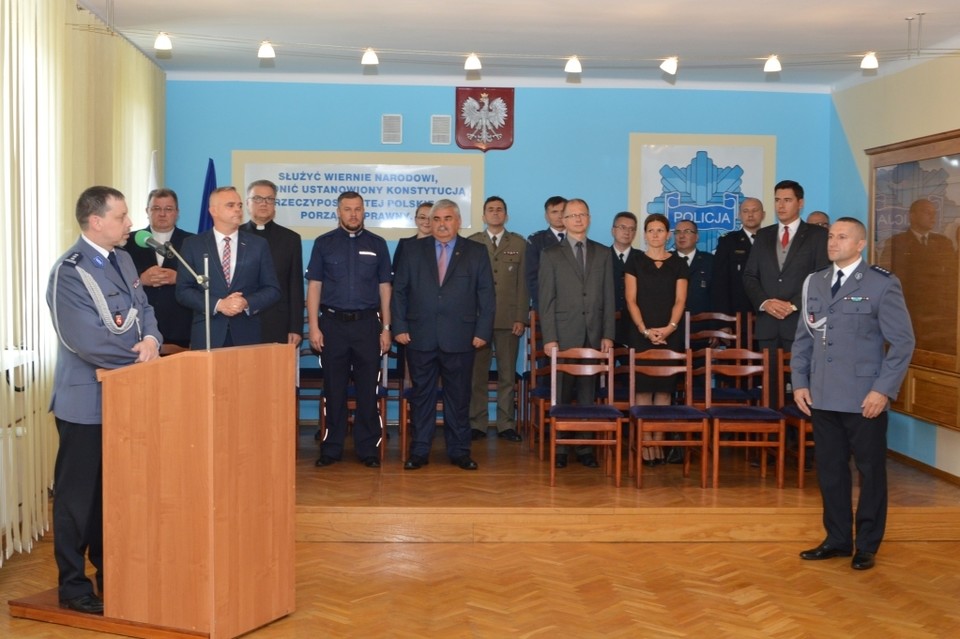 Zgodnie z policyjnym ceremoniałem, komendant przywitał sztandar jednostki oraz złożył meldunek o objęciu obowiązków przełożonemu – Komendantowi Wojewódzkiemu Policji w Lublinie insp. Pawłowi Dobrodziejowi. W uroczystości uczestniczyli przedstawiciele samorządów, służb współpracujących z Policja oraz policjanci i pracownicy komendy.