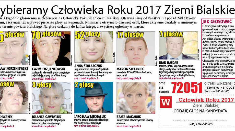 Głosowanie trwa do środy 28 lutego 2018 r. do godz. 23.59, uwaga o wliczeniu głosów z kuponów decyduje data ich faktycznego wpłynięcia do siedziby redakcji w regulaminowym terminie.