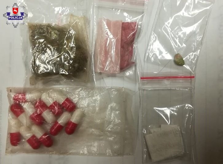 Podczas czynności wykonanych na miejscu zdarzenia policjanci ujawnili w pojeździe zawiniątka z amfetaminą i marihuaną. Dodatkowo, w miejscu zamieszkania mężczyzny, funkcjonariusze zabezpieczyli tabletki, które w swoim składzie zawierają pochodne opiatów. Pełny skład substancji zostanie określony podczas badań laboratoryjnych.