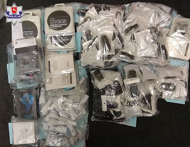 Na miejscu funkcjonariusze potwierdzili tą informację. W trakcie prowadzonych czynności ujawnili i zabezpieczyli ponad 1700 sztuk „drobnej elektroniki”. Zabezpieczono m.in. słuchawki, pendrive, ładowarki indukcyjne oraz samochodowe, baterie a także lokówki. Wszystkie zabezpieczone przedmioty trafiły do policyjnego depozytu. Wartość rynkowa zabezpieczonego mienia została wstępnie oszacowana na kwotę około 50 tys. zł. Policjanci ustalają wszystkie okoliczności sprawy.