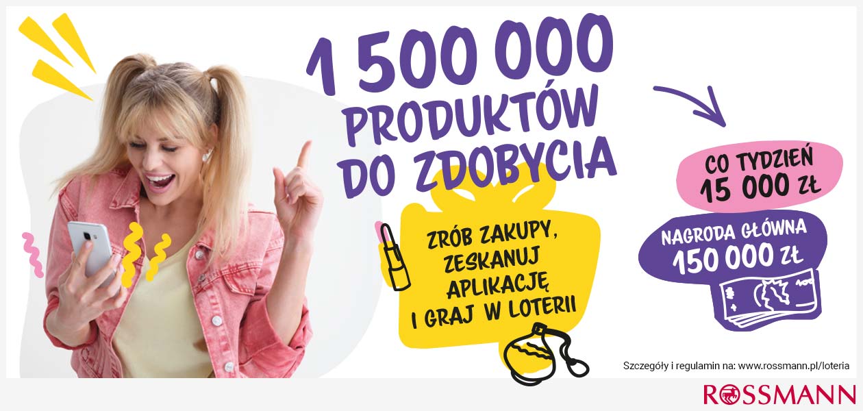 Codziennie w Rossmannie można wygrać kremy, szampony, mydła, olejki do ciała czy zdrowe przekąski. Należy zrobić zakupy w drogerii stacjonarnej za minimum 20 zł (nie włączają się w to produkty lecznicze, wyroby medyczne, preparaty do początkowego żywienia niemowląt, alkohol i karty podarunkowe) i zeskanować przy kasie najnowszą wersją aplikacji Rossmann PL. Po wybraniu przycisku „Gram w loterii” należy zaakceptować regulamin i energicznie potrząsnąć telefonem prawo-lewo. Informacja o tym czy wygraliśmy ukaże się na ekranie. Wygrany produkt należy wziąć z półki, podejść do kasy i poinformować sprzedawcę o tym, że jest to wygrana w loterii.