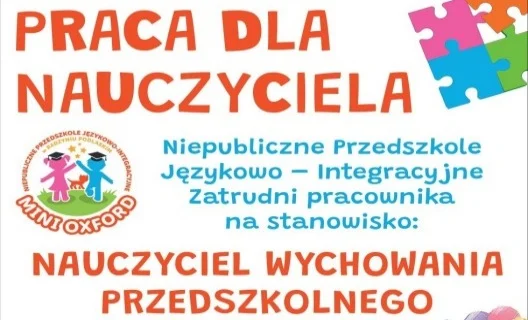 Niepubliczne Przedszkole MINI OXFORD szuka pracownika.