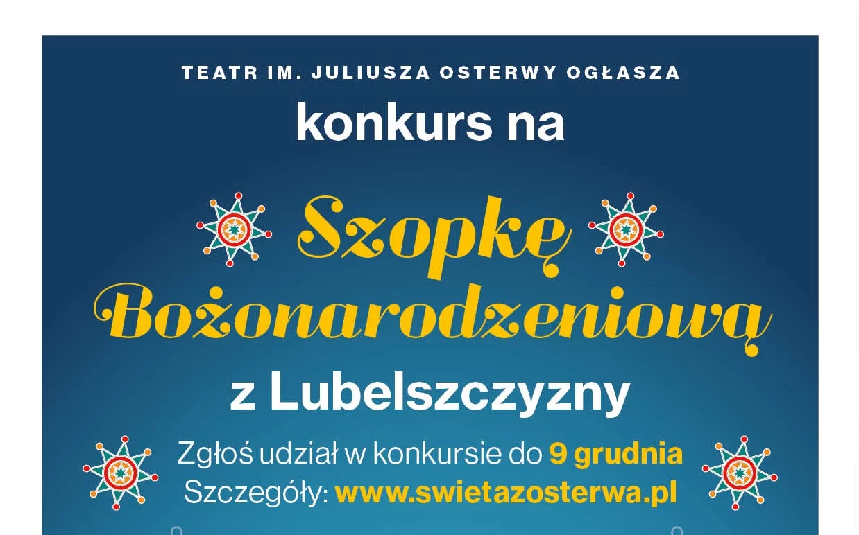 Koordynatorem Konkursu na Szopkę Bożonarodzeniową z Lubelszczyzny jest Dział Edukacji Teatru Osterwy.