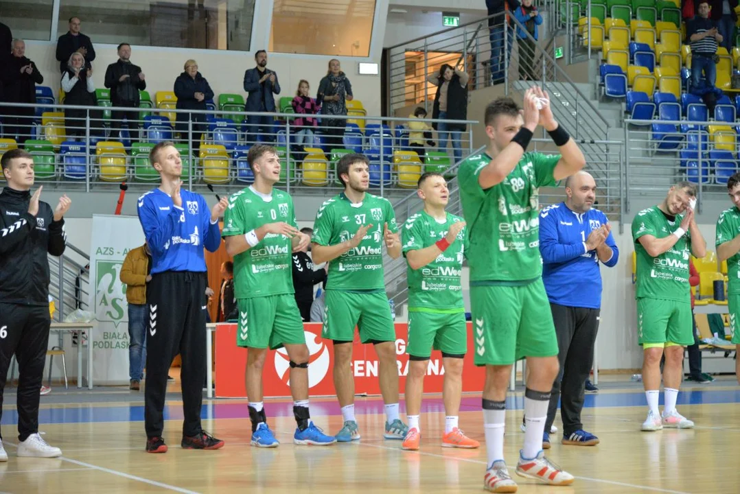 Biało-zieloni od początku dominowali, Jeszcze w 25 minucie goście mieli trzy bramki straty do naszych. Końcówka pierwszej połowy to znakomite fragmenty ekipy z grodu nad Krzną. Ten fragment AZS wygrał 6:3 i na przerwę schodził z przewagą aż sześciu trafień. Druga część to pełna kontrola zespołu Stefańca. Skończyło się wygrana różnicą dziewięciu goli.