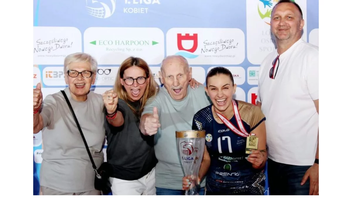 fot. Ania Bodasińska w towarzystwie mamy Anny, babci Anny, taty Sławomira oraz dziadka Roberta. W jej dłoni puchar za mistrzostwo I ligi