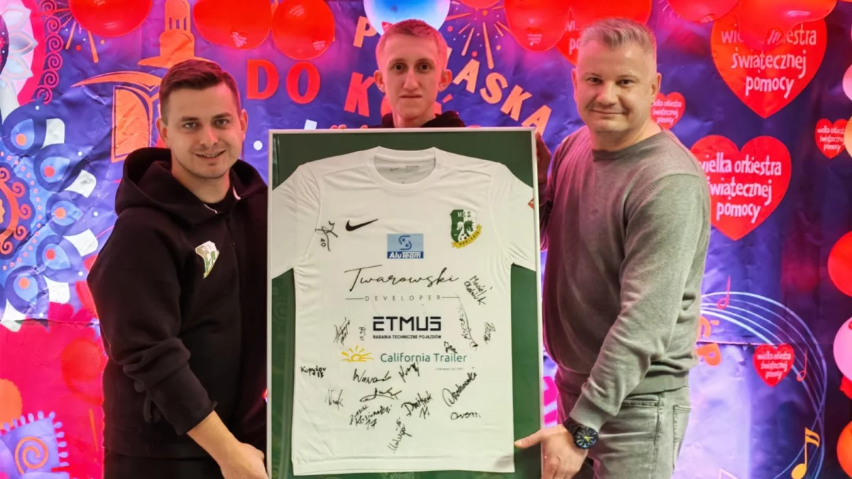 Prezes klubu Podlasie Biała Podlaska Sebastian Paszkowski wraz z trenerem zespołu Maciejem Oleksiukiem przekazali na licytację oficjalną koszulkę meczową trzecioligowej drużyny.