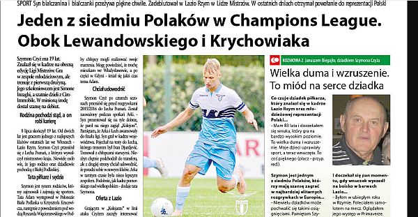 8 lipca skończył 19 lat. Od dwóch lat jest graczem jednego z najlepszych klubów ostatnich lat we Włoszech - Lazio Rzym. Szymon Czyż przeniósł się z Lecha Poznań, z którym wywalczył mistrzostwo kraju. Niewiele osób wie, że jego rodzice oraz dziadkowie pochodzą z Białej Podlaskiej.