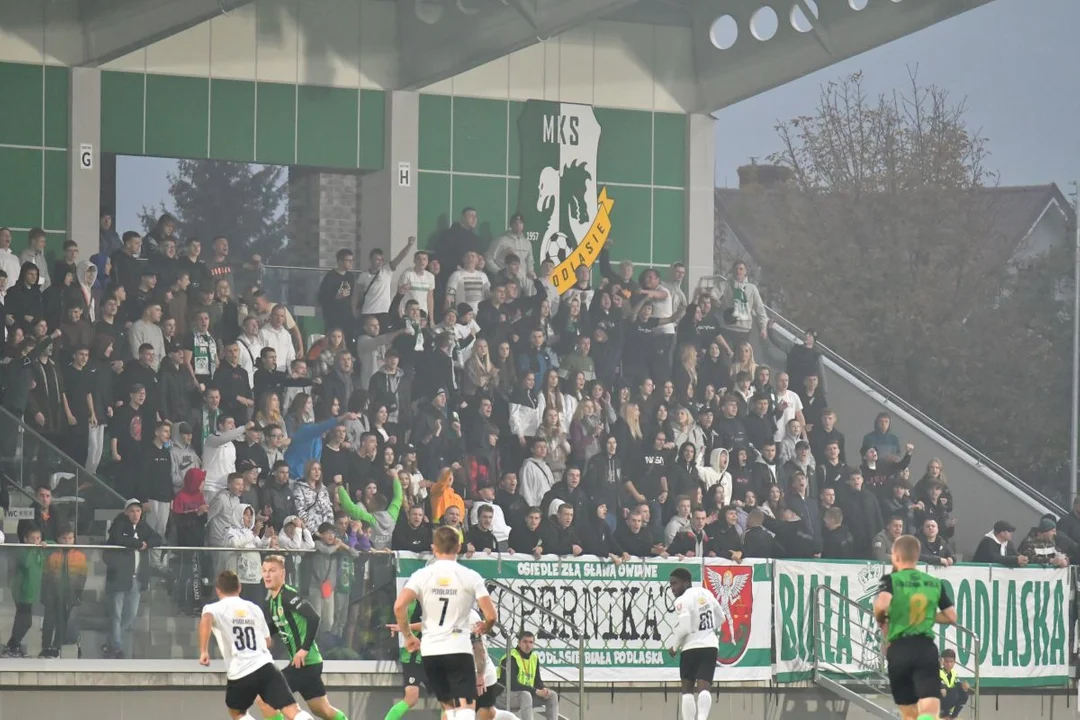 Mimo kiepskiej pogody na obiekcie przy ul. Piłsudskiego nie zabrakło wiernych fanów Podlasia. Niestety, po raz kolejny musieli obejść się smakiem. Ekipa Artura Renkowskiego nie jest w stanie zwyciężyć na nowym stadionie.