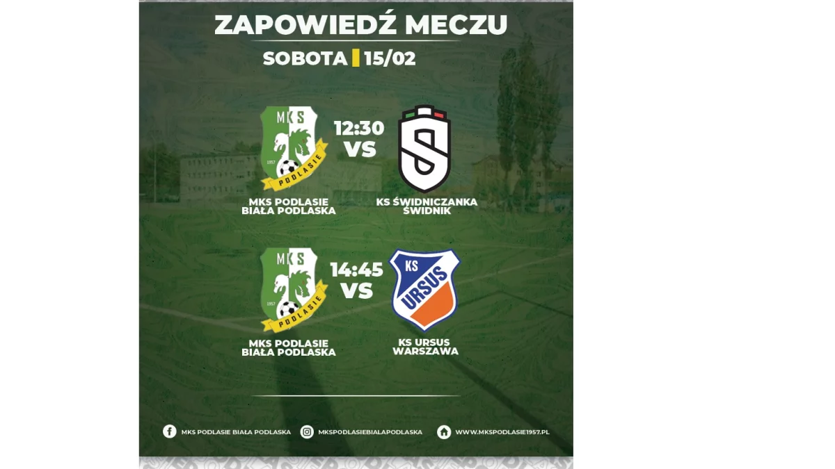 W sobotę podopieczni Artura Renkowskiego rozegrają dwa mecze. O godz. 12:30 zmierzą się z ligowym rywalem - Świdniczanką Świdnik, zaś o godz. 14:45 z czwartoligowym Ursusem Warszawa.