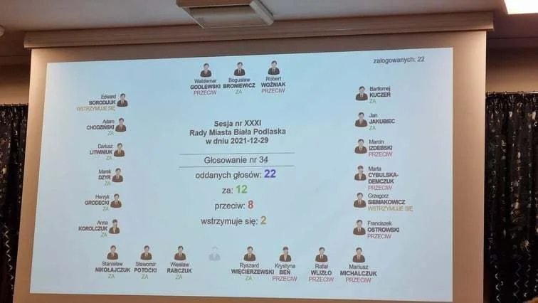 Głosy na "nie" oddali: Waldemar Godlewski, Robert Woźniak, Rafał Wlizło, Mariusz Michalczuk, Krystyna Beń, Franciszek Ostrowski, Marta Cybulska-Demczuk, Marcin Izdebski.